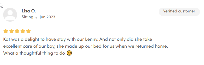 Hi, I’m Kat—38, non-smoker, fully vaccinated, and a lifelong animal lover. I bring the same dedication, responsibility, and organisation to pet sitting that I’ve mastered in my 15 years as a personal assistant. Following detailed instructions on pet care, home upkeep, and garden maintenance is second nature to me.